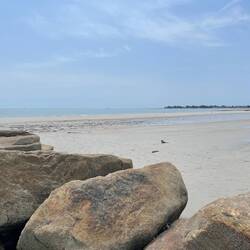 Hier in der Bretagne hat es eine extrem starke Ebbe und Flut. Teilweise gibt es hier einen Tidenhub von bis zu 14 m. Das Wasser kommt mit einer extremer Kraft auf den Strand zurück…