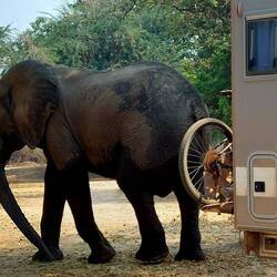 Es ist unglaublich, wie leise diese Dickhäuter auf ihren stempelartigen Beinen schleichen können. Wir haben ihn nicht kommen hören.