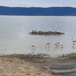 Vom Aussichtspunkt am Rand des Kraters eröffnet sich uns ein grandioser Blick auf das riesige Areal aus Steppe, Seen und Buschland. Zunächst fahren wir 600 Meter hinunter in den Krater. Bei einer spannenden Pirschfahrt erleben wir die Artenvielfalt dort hautnah.