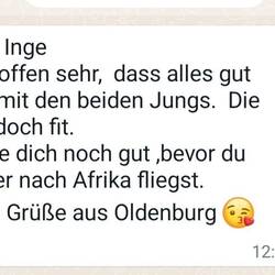 *Liebe Inge, auch aus Ägypten drücken wir Viktor und seinem Bruder die Daumen und hoffen, dass sie gesund wieder am 11.1. Dich treffen werden😘. LG und fühle dich gedrückt, Anne und Alex
