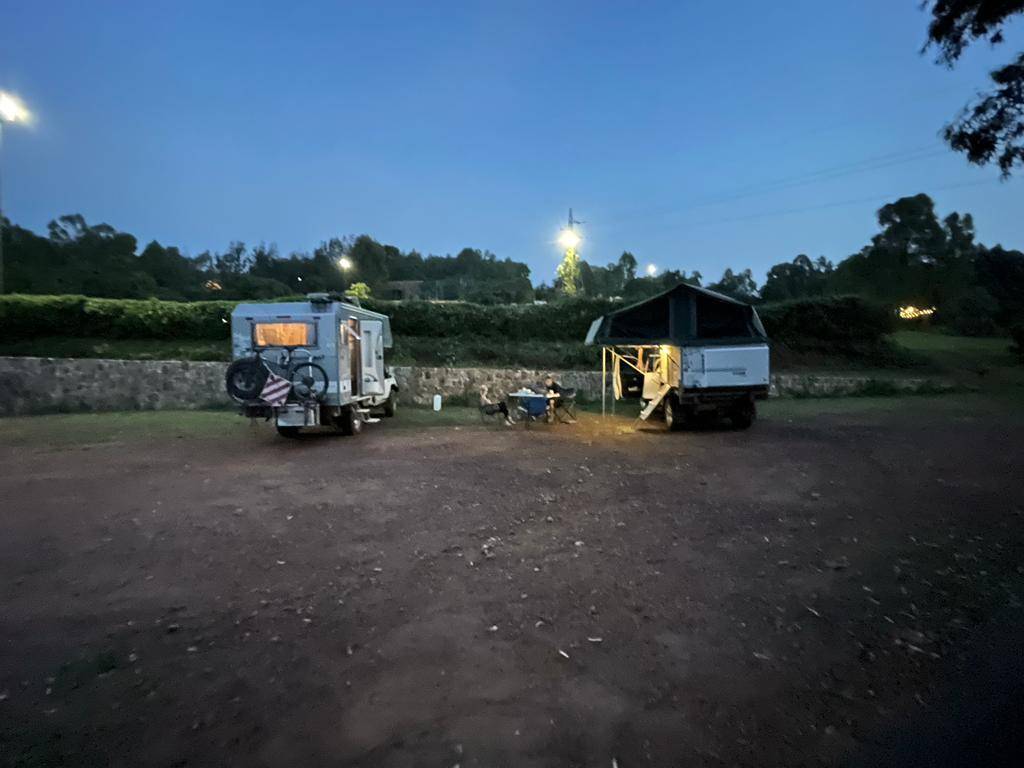 Nachdem wir mehr als 4 Stunden die gesamte Stadt vergeblich nach einem Campingplatz abgesucht haben, erhalten wir per Zufall die Telefonnummer einer Belgierin, die im Fazenda Country Club in Kigali arbeitet. Karola ruft sie an, und wir werden spontan allesamt für die Nacht in deren wunderschönes Haus eingeladen. Ein tolles Abendessen gibt es obendrein.