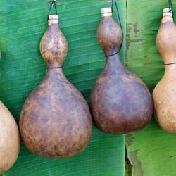 Dort steht ein kleine Junge, der Kalebassen verkaufen will. Mein Fenster ist geöffnet, und er hält mir die hohlen, schön verzierten Kürbisse entgegen.