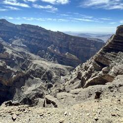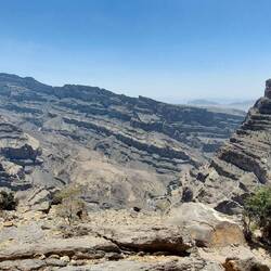 Doch weil sich hier oben im Gebirge eine Radarstation des omanischen Militärs befindet, ist nicht der eigentliche Gipfel das Highlight, sondern der sich darunter befindende Canyon, durch dessen Tiefen das Wadi Ghul fließt.