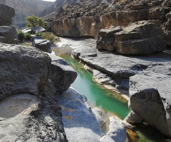 Wadi Damm liegt ca eine Autostunde von unserem Camp Jebel Shams Resort entfernt.