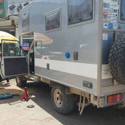 Jetzt stehen wir bei brütender Hitze an einer Werkstatt in einem kleineren Ort, denn anscheinend hat der arme Wagen doch einen Schaden davon getragen. Wundert euch das? Mich nicht!En savoir plus