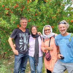 Auf einem großen Platz sind wir plötzlich umgeben von schwarzen Tschadors, in die sich viele Frauen hüllen – ein Zeichen dafür, dass sie religiös sind. Was auf den ersten Blick abweisend wirkt, ändert sich, sobald Frauen unter sich sind. Der Tschador öffnet sich und ein herzliches Lächeln strahlt uns entgegen: „Welcome to Iran"
