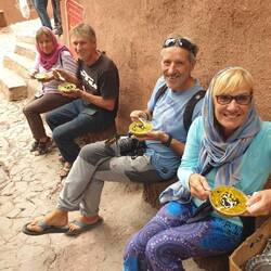 uns „Lavashak“ an, eine Art säuerlicher, flach getrockneter Fruchtbrei aus Pflaumen. Probieren tun wir alle, doch richtig schmecken will es keinem von uns.