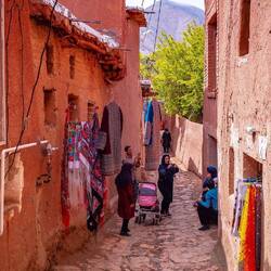 Nur etwas mehr als eine Autostunde südlich von Kashan liegt abseits der Hauptstraße das historische Dörfchen Abyaneh. Aufgrund der durchgängig aus roten Ziegeln, Lehm und Stroh erbauten Häuser wird es auch „rotes Dorf“ genannt.
