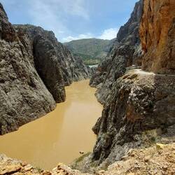 Die Fahrt am Rande des Abgrunds ist spektakulär und sorgt für Hochspannung pur. Auf einer Seite hat man ständig den Blick auf den tosenden Euphrat, der Hunderte Meter unter uns fließt. Auf der anderen Seite ragen die schroffen Felsen des Gebirges bedrohlich steil empor.