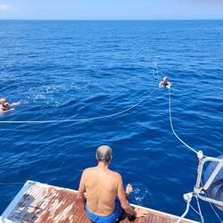 eine Segeltour zum Baden einfach perfekt ist: Wir müssen nur das Boot anhalten, ankern und abtauchen.