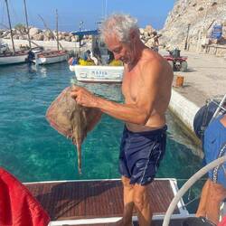Keine 10 Minuten später ist das Problem behoben, die Schiffsschraube kann sich wieder ungehindert drehen und wir holen den Anker ein.