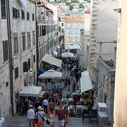 Die prachtvolle Placa, auch Stradun genannnt, ist die Hauptstraße von Dubrovnik. Von ihr aus führen kleine, romantische Gässchen durch den historischen Altstadtkern mit den wichtigsten