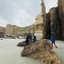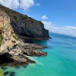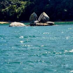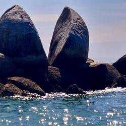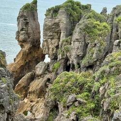 Doch in den Legenden der Māori schwingt mehr Zauber mit. Für sie sind die Felsen die versteinerten Vorratskörbe (Kaihinaki) des großen Ahnen-Kanus Araiteuru, das hier in stürmischer See sein Ende fand – eine ewige Erinnerung an die Reise ihrer Vorfahren und ein heiliger Ort der Stille.