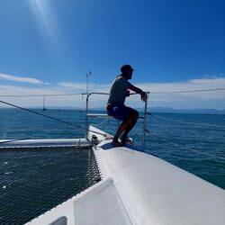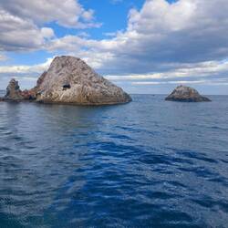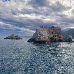Wir geniesen die wunderschönen Ausblicke auf das Meer, das während unserer Überfahrt weitgehend ruhig ist.