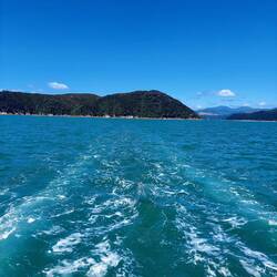 Die Tour ist toll, wir haben atemberaubende Blicke auf den Queen Charlotte Sound und herrlichstes Wetter.