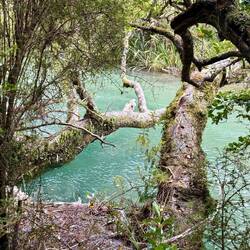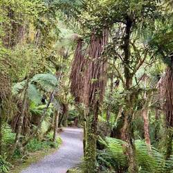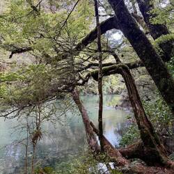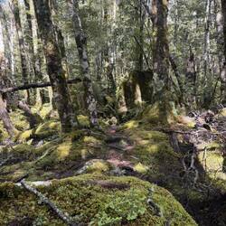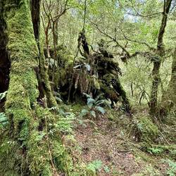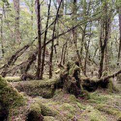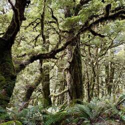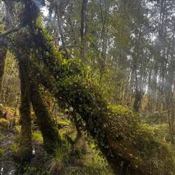 Verschlungene, knorrige Äste der Kamahi-Bäume strecken sich wie Hände zum Himmel, und die dichte Moosdecke verleiht dem Ganzen eine verzauberte Atmosphäre - wir fühlen uns wie in einem Märchen.