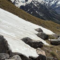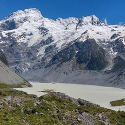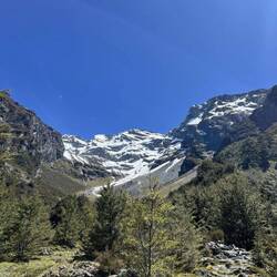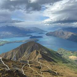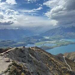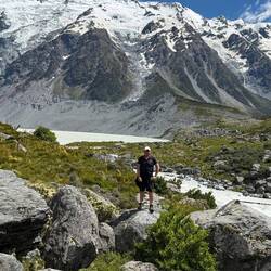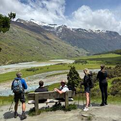 Der Weg ist steil und steinig, aber sämtliche Mühen werden belohnt: Nach etwa zwei Stunden erreichen wir das Glacier Basin mit unglaublichen Ausblicken auf die Humboldt Mountains und die Gegend um Glenorchy.