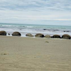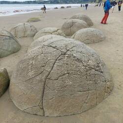 Es handelt sich um eine mystisch anmutende Sammlung riesiger, grauer Steinkugeln, die in malerischen Grüppchen platziert am Strand vom Pazifik umspült und von Touristen belagert werden.