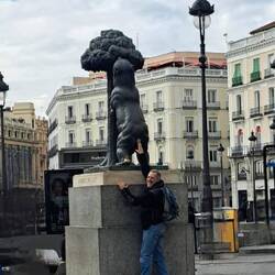 Auf der Plaza Puerta del Sol mitten in der Innenstadt strömen Menschenmassen aus allen Richtungen. Losverkäufer stehen an jeder Ecke und verkleidete Akteure bespaßen Touristen im Mickey Mouse, Donald Duck oder Gorillakostüm. Doch die Show wird ihnen von einem ganz anderen Highlight des Platzes gestohlen: dem berühmten Bär, der am Erdbeerbaum nascht - bekannt als „El Oso y el Madroño “.