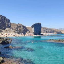 Eine beeindruckende Kulisse aus bizarr geformten Felsen, die bis zu 20 Meter emporragen und im Kontrast dazu das blaugrüne Wasser mit malerischen Buchten.