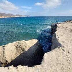 Unser Blick reicht einmal tief in feuerrote Schluchten, andernorts ragen skurrile Felsen senkrecht aus dem teilweise türkisfarbenen Wasser, und am Horizont verschmilzt der Atlantik mit dem Himmel.