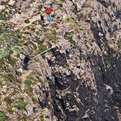 Die Abhänge der hervorstehenden Klippen werden dann glatt und rutschig.