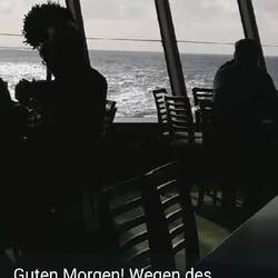 Doch wir können keine Luke und kein Fenster auch nur einen Spalt breit öffnen. Zu groß ist die Gefahr, dass der fürchterliche Sturm alles aus der Verankerung reißt.