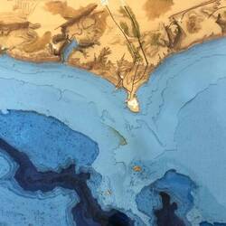 An Heinrichs Seite gesellen sich links und rechts wichtige portugiesische Persönlichkeiten, die sich in Richtung des unbekannten Wassers zu bewegen scheinen: