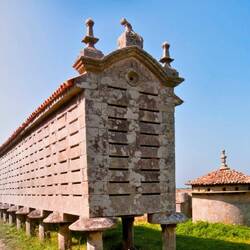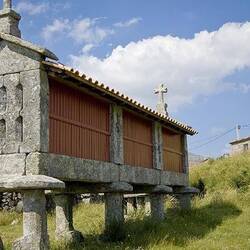 Ein Hórreo (lateinisch horreum) ist ein traditioneller Speicherbau für geerntete Feldfrüchte.