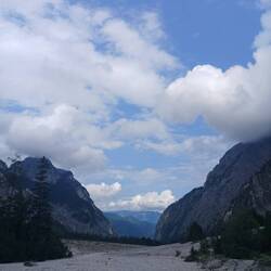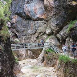 Wanderung zur Wimbachgrieshütte bei angenehmen Wetter. Nach Kasprrssknödel und Sockenkauf, Abstieg zurück zur Wimbachbrücke.