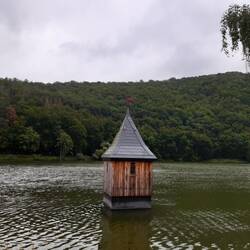 Das Vorstaubecken in Nieder-Werbe inkl Nachbau des versunkenen Kirchturmes