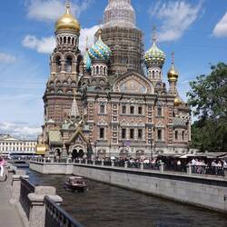 Retour à la perspective Nevski pour le déjeuner, puis marche à pied le long des canaux de la Moïka et Griboïdov, vers l'église Saint Sauveur, dont les travaux en cours ne dissuadent personne d'y aller, au point qu'il devient difficile de marcher le long des canaux. Pas question bien sûr de faire la queue pour entrer à l'intérieur de l'église pour admirer les mosaïques, car 5000 personnes avaient eu simultanément la même idée.