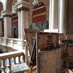 Le palais, qui est partiellement en travaux, est en effet une école d'architecture, de peinture et de sculpture en pleine activité. La visite croise donc des étudiants très occupés à nettoyer des sculptures, reproduire des fresques ou des architectures, déménager des caisses d'objets d'art, etc. Dans cette ambiance studieuse, le conférencier nous a fait passer d'une pièce à l'autre, en surfant sur les styles, les époques, les pays... La collection d'objets est incroyablement variée, des fresques aux meubles, en passant par la vaisselle, les céramiques, les poupées, et des tas d'autres choses. Bien que faisant penser à un loft en cours de rénovation le palais est splendide. Nous n'avons évidemment rien compris à la conférence, mais nous conservons de cette heure de visite une impression inoubliable de richesse, de beauté et de poésie.