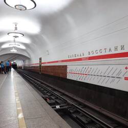 Marche d'approche de 3 km vers la station centrale de la place Vosstania, sur la perspective Nevski. La station elle même est un bâtiment de pierre circulaire très imposant.