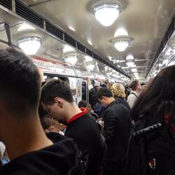 Tout le monde se place sur la partie droite des marches, en attendant de se faire descendre (aucun jeu de mots). Très peu de personnes descendent à pied sur la partie gauche.