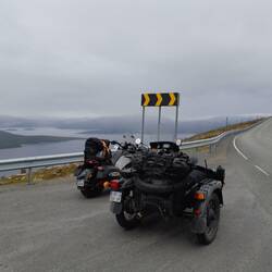 Départ à 9h30 pour rouler 490 km jusqu'à Alta, au pied de la péninsule du Cap Nord. Voyage sans histoires, chaud et ensoleillé le matin, glacial et pluvieux l'aprèsLeia mais