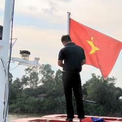 Heute Morgen haben wir unsere Reise von Phnom Penh fortgesetzt. Den ganzen Tag sind wir auf dem Mekong in Richtung Vietnam gefahren und haben am Nachmittag die Grenze erreicht.