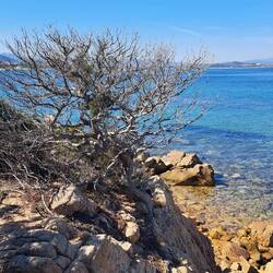 Wir unternehmen wieder einen längeren Strandspaziergang, diesmal in die andere Richtung. Wir bekommen viele kleine Sandstrände, Buchten und faszinierende Felsen im Wasser zu sehen.
