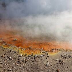 Esta mañana hemos recuperado lo que nos habíamos perdido. Así que volvimos un poco en coche hasta Wai-O-Tapu, al País de las Maravillas Termales. Como las entradas no se pueden comprar en la primera parada (o sólo por Internet), el Lady Knox Geyser, hizo falta un poco de volumen de datos y mucha paciencia (el pago funcionó con la tercera tarjeta de crédito) para asegurarnos la entrada. La visita al parque comenzó probablemente para todos los visitantes a las 10.15 de la mañana, cuando el Lady Knox Geyser (¡creado artificialmente!) se alimenta con una "pastilla" de jabón y se activa poco después. Resulta algo extraño presenciar esta ceremonia creada artificialmente, pero aun así es muy impresionante ver cómo el géiser expulsa agua caliente. Tras unos minutos de espectáculo, nos dirigimos (obligados, ya que la carretera de acceso al géiser vuelve a estar cerrada) en dirección al Centro de Visitantes, donde tomamos algo caliente en la cafetería (una decisión inteligente, ya que pudimos evitar las multitudes en su mayor parte). Desde la cafetería pasamos por el Parque de Visitantes, donde pudimos visitar de nuevo varias piscinas calientes, etc. El claro punto culminante de la visita de hora y media fue la Piscina del Champán. Por desgracia, el vapor era demasiado intenso, por lo que no siempre se podían apreciar los maravillosos colores. Tras completar el recorrido, fuimos a la última atracción de la Villa Termal, las Piscinas de Barro. Habíamos visto piscinas de barro una y otra vez en las otras atracciones, pero éstas eran con diferencia las más espectaculares, porque en comparación con las otras estaban muy activas y burbujeaban con fuerza (💩). Para nosotros fue un buen final de este tipo de atracciones, porque aunque siempre había algo nuevo e interesante, ya habíamos visto suficientes aguas termales, etc. en los últimos días.Læs mere