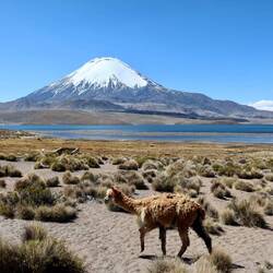 Unsere erste Nacht in Putre war sehr kalt (unsere Heizung funktionierte irgendwie nicht so richtig), das Frühstück stärkte uns aber wieder, ehe es um 09:00 Uhr weiterging mit unserer Tour. Kurz nach Abfahrt in Richtung Lauca Nationalpark sichteten wir bereits unsere ersten Lamas. 🦙 Weiter ging es zu Las Cuevas im Lauca NP (ein kleiner Wanderweg, der unter anderem Felsen beherbergt, welche schon vor Tausenden von Jahren als Jägersiedlungen dienten), wo wir viele Viscachas und Vikunjas zu Gesicht bekamen. 😍 Nach dieser kurzen Wanderung auf 4’400 m.ü.M ging es weiter zu einer Chacu genannten archäologischen Stätte, welche sich etwas von der geteerten Hauptstrasse entfernt befand. Die Stätte diente dazu, Tiere wie Lamas und Alpakas einzusammeln. Zurück auf der Hauptstrasse fuhr uns Álvaro zu einem Aussichtspunkt über die wunderschönen Cotacotani Lagunen, welche wir nach einem kurzen Zwischenhalt für unser Hauptziel des Tages, dem Lago Chungara, wieder verliessen. Der See ist einer der höchstgelegenen (4’566 m.ü.M. gem. Wikipedia) der Welt. Der in der Nähe liegende Vulkan Parinacota und die um das Ufer grasenden Tiere geben dem See zusätzliche Attraktivität.