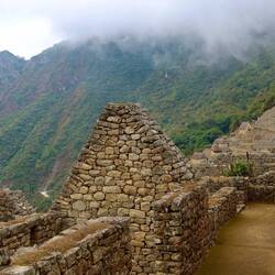 Heute hiess es nämlich erneut früh aufstehen. Um 03:50 Uhr mussten wir uns bereits beim Büro von IncaRail einfinden, um den gebuchten Bus nach Ollantaytambo zu nehmen. Dort wurden wir nach kurzer Wartezeit zu peruanischen Tänzen und Musik zum Bahnhof geführt, wo wir den Zug in Richtung Aguas Calientes a.k.a. Machu Picchu Pueblo bestiegen. Die Fahrt durch immer dichter werdenden Dschungel war bereits sehr eindrücklich. Die Kleinstadt, die über keine Strassenanbindung verfügt, überraschte uns dann umso mehr mit den ihr umgebenden Bergen. Wir hatten allerdings noch nicht viel Zeit, diese zu besichtigen (Ankunft um 08:01 Uhr), da wir einen Eintritt für den Machu Picchu bis 09:00 Uhr kauften und vom Dorf noch die knapp halbstündige Fahrt (zu Fuss hätten wir unsere Eintrittszeit verpasst) hinauf zum Machu Picchu hinter uns bringen mussten. Beim Eingang angekommen lief dann alles ziemlich problemlos ab und nach der Ticketkontrolle ging unsere Tour auf dem Circuito 2 los.