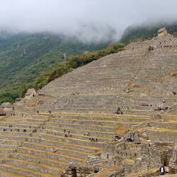 Auf den oberen Terrassen angekommen, mussten wir aber zuerst einige Minuten warten, da unsere Aussicht mehrheitlich vom Nebel versperrt wurde. Trotzdem hatte auch diese Stimmung etwas Einzigartiges. Während der „Wartezeit“ versuchten wir auch noch kurz die Inka-Brücke zu besichtigen, leider wurden wir aber am Checkpoint nicht vorbeigelassen, da wir nicht das korrekte Ticket besassen (ein Versuch war es trotzdem wert π). Wieder zurück auf den oberen Terrassen verschwand irgendwann auch der Nebel und das weltbekannte Bild präsentierte sich nun auch uns. Das für uns wirklich Eindrückliche erlebten wir allerdings erst später, als wir auf den unteren Terrassen unterwegs waren. Auf den Bildern und auch von der Aussicht der oberen Terrassen wird die Grösse dieser Ruinenstadt einfach nicht spürbar. Aber es ist wirklich eindrücklich, wie gross die Stadt (noch immer) ist. Knapp zwei Stunden liefen wir durch die Ruinen, ehe wir unseren Circuit beendeten und schon bald später wieder im Bus Richtung Aguas Calientes sassen. Im herzigen Dörfchen spazierten wir ein wenig umher, gönnten uns eine stärkende Mahlzeit und warteten, bis unser Zug zurück nach Ollantaytambo fuhr. Von dort aus ging es auf einer endlos scheinenden Busfahrt zurück nach Cusco, wo wir nach einem eindrücklichen und anstrengenden Tag müde ankamen.