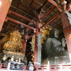 El día de hoy lo pasamos en Nara. Al menos por la tarde, después de haber dormido mucho. La primera capital permanente de Japón es conocida principalmente por sus numerosos complejos de templos y el Parque de Nara, donde viven numerosos ciervos sika. Por supuesto, el Parque de Nara también estaba en nuestra agenda. Se puede llegar fácilmente a pie desde la estación en unos 30 minutos. Nos quedamos allí un rato antes de ir a Todai-ji, un templo budista. Su sala principal es el edificio de madera más grande del mundo. En esta sala también se encuentra la estatua de bronce budista más grande (15m). De hecho, el recorrido por las instalaciones fue muy impresionante. El templo también tiene un museo, que también visitamos. Esto fue menos impresionante ya que muchas de las inscripciones no estaban traducidas al inglés. Tras otro paseo hasta la estación, nos encontramos en el tren que se dirige a "casa".Read more