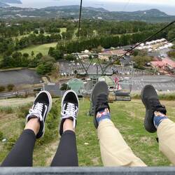 Als zweites Ziel für den heutigen Tag war die Besteigung des Mount Omuro geplant. Ein Bus brachte uns dabei von der Küste direkt an den Fuss des erloschenen Vulkans. Dann folgte auch schon die Besteigung des 580m hohen Gipfels. Nun ja, Besteigung ist wohl das falsche Wort, denn es führt nur ein Sessellift nach oben. 😝 Die windige Fahrt in (meistens) rund 1m Höhe (teilweise streiften wir sogar den Boden mit unseren Füssen) gewährte uns dabei erste Blicke auf den berühmten Fuji. Oben angekommen mussten wir dann leider feststellen, dass der Wind auf dem Sessellift gar nicht so schlimm war, denn nun mussten wir uns respektive unsere Sachen richtig gut festhalten. Es lohnte sich aber allemal, denn der Rundweg um den Krater bot sehr schöne Aussichten. Mit der fast letzten Fahrt ging es dann wieder bergab, wo wir leider eine halbe Stunde draussen bei doch ziemlicher Kälte auf den Bus warten mussten, welcher uns nach Ito bringen sollte. Die Busfahrt bot dann allerdings ein weiteres Highlight, denn der ganze Himmel färbte sich in prächtigem rosa. Etwas kalt zurück in Atami angekommen stärkten wir uns mit einem wärmendem Ramen-Gericht und zusätzlichen Dumplings und Reis. Das war der bisher mit Abstand kälteste, aber dennoch wieder ein wunderbarer Tag.