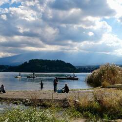 Nach zwei Nächten im kalten Atami ging unsere Reise weiter Richtung Ashi-See. Nach einer kurzen Zugfahrt und sehr hektischem Umsteigen ging es von Odawara direkt zu unserer Unterkunft am See. Dort angekommen deponierten wir zuerst unser Gepäck, um uns anschliessend an die Seepromenade zu begeben. Da es herrliches Herbstwetter war, setzten wir uns an die Promenade und genossen die Sonnenstrahlen und das wunderschöne Panorama mit dem See, den umliegenden Bergen und dem etwas weiter entfernten Fuji (der sich allerdings die meiste Zeit hinter Wolken versteckt hielt). Als uns etwas kalt wurde, verpflegten wir uns im nahegelegenen Café (das Einzige, was geöffnet hatte). Danach ging es für den Sonnenuntergang erneut an die Seepromenade, diesmal konnten wir jedoch keinen schönen rot/orange/rosa-farbenen Himmel bestaunen. Zum Einbruch der Dunkelheit kehrten wir in unser warmes Zimmer zurück.
