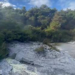 Esta mañana hemos recuperado lo que nos habíamos perdido. Así que volvimos un poco en coche hasta Wai-O-Tapu, al País de las Maravillas Termales. Como las entradas no se pueden comprar en la primera parada (o sólo por Internet), el Lady Knox Geyser, hizo falta un poco de volumen de datos y mucha paciencia (el pago funcionó con la tercera tarjeta de crédito) para asegurarnos la entrada. La visita al parque comenzó probablemente para todos los visitantes a las 10.15 de la mañana, cuando el Lady Knox Geyser (¡creado artificialmente!) se alimenta con una "pastilla" de jabón y se activa poco después. Resulta algo extraño presenciar esta ceremonia creada artificialmente, pero aun así es muy impresionante ver cómo el géiser expulsa agua caliente. Tras unos minutos de espectáculo, nos dirigimos (obligados, ya que la carretera de acceso al géiser vuelve a estar cerrada) en dirección al Centro de Visitantes, donde tomamos algo caliente en la cafetería (una decisión inteligente, ya que pudimos evitar las multitudes en su mayor parte). Desde la cafetería pasamos por el Parque de Visitantes, donde pudimos visitar de nuevo varias piscinas calientes, etc. El claro punto culminante de la visita de hora y media fue la Piscina del Champán. Por desgracia, el vapor era demasiado intenso, por lo que no siempre se podían apreciar los maravillosos colores. Tras completar el recorrido, fuimos a la última atracción de la Villa Termal, las Piscinas de Barro. Habíamos visto piscinas de barro una y otra vez en las otras atracciones, pero éstas eran con diferencia las más espectaculares, porque en comparación con las otras estaban muy activas y burbujeaban con fuerza (💩). Para nosotros fue un buen final de este tipo de atracciones, porque aunque siempre había algo nuevo e interesante, ya habíamos visto suficientes aguas termales, etc. en los últimos días.Read more