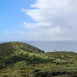 En New Plymouth, habíamos planeado hacer una excursión por el Parque Nacional de Egmont. Aunque dormimos un poco más de lo previsto, salimos antes del mediodía hacia el aparcamiento de Mangorei Road, al que llegamos en unos 20 minutos. Luego nos preparamos para el ascenso de 2 horas pasando por el refugio de montaña Pouakai Hut hasta el lago de montaña. Aunque la temperatura no era demasiado alta, sudábamos mucho mientras subíamos unos 700 metros (la mayoría por escaleras). Cuando llegamos al lago de montaña, primero nos pusimos ropa fresca, seca y de abrigo (incluso nuestros gorros y guantes de invierno), ya que hacía mucho frio allí arriba y el viento lo hacía un poco incómodo. El motivo real de esta excursión era la vista del volcán Monte Taranaki, que se dice que se refleja en el pequeño lago de montaña en los días sin viento. Bueno, como ya mencionamos, no fue sin viento y como el tiempo era muy inestable, nos sentimos transportados de vuelta a Japón (palabra clave: Monte Fuji)... Al menos pudimos fotografiar la montaña desde lejos el día anterior. 😄