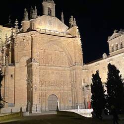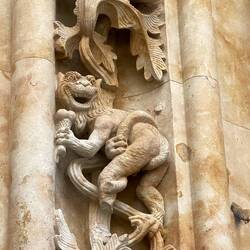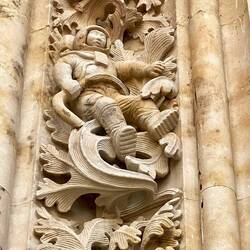 ReisendeIt was sculpted by Miguel Romero (a resident of Salamanca and not an extraterrestrial, as far as we know) in 1992 during a restoration that was carried out on the facade. Here's a link to read about it: https://shorturl.at/aCLW3