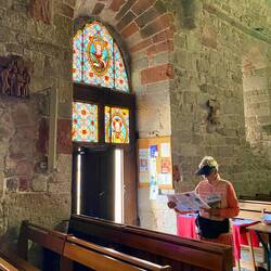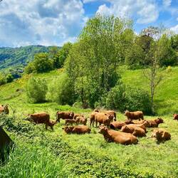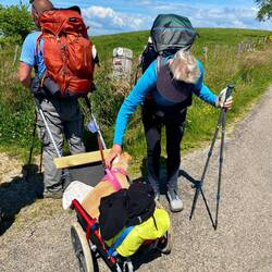 A lot of climbing today, we walked about 17 km and most of it uphill. It was very beautiful though, we enjoyed the views. It was our first day and we weren’t used to carrying our packs so it was aLäs mer