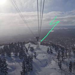 Heute morgen ist die Gondelbahn wegen starkem Wind nicht gefahren. Insgesamt 550 Höhenmeter. Diesen ganzen Weg sind wir mit Fellen gelaufen. Hab ich mit Pfeilen markiert.